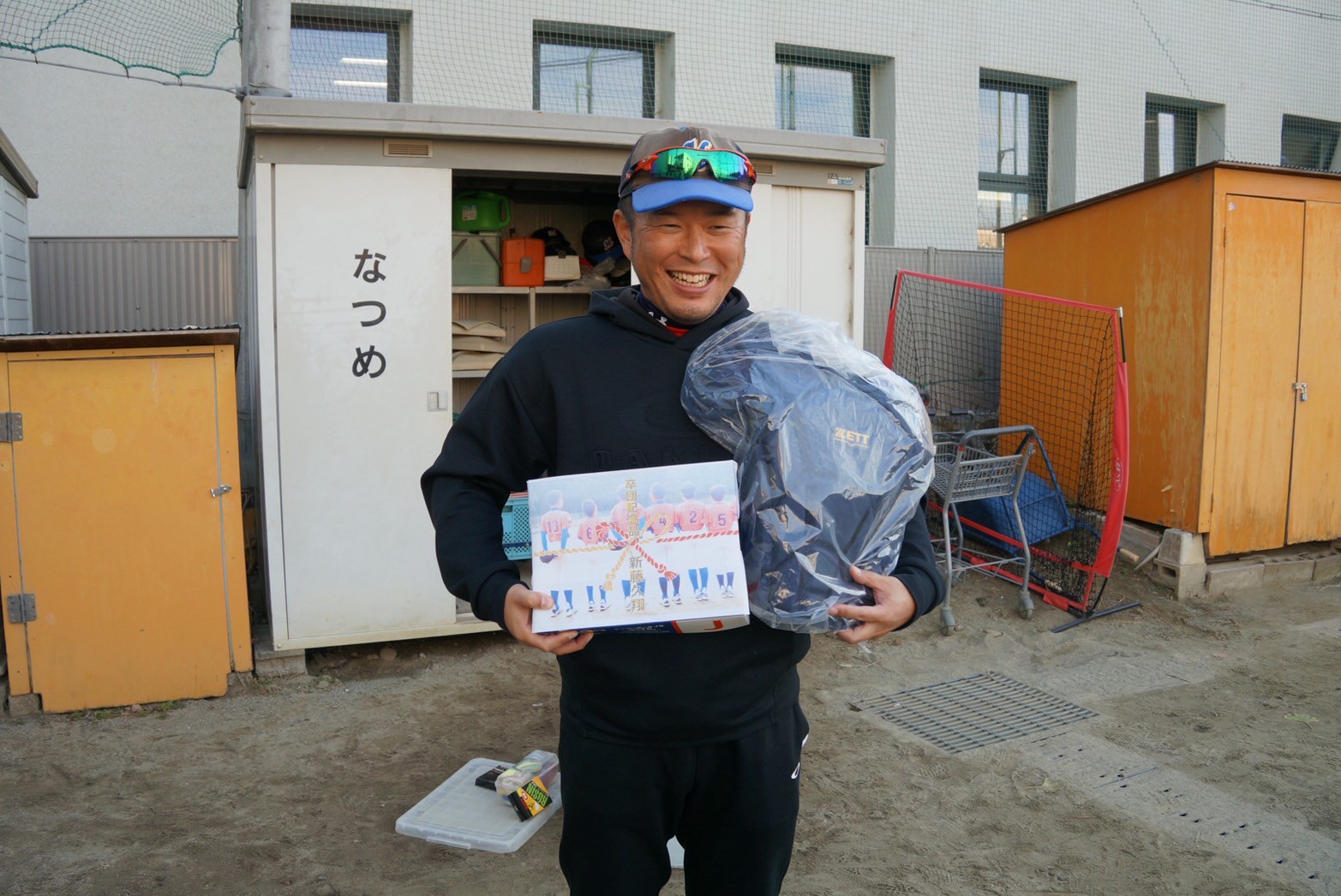 卒団生からはキャッチャー防具とボールを頂きました。ありがたく使わせて頂きます。